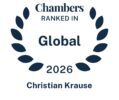 Chambers Global 2025 (4 años consecutivos en el ranking, desde 2021): Foreign Expert Germany – „Christian Krause advises German clients on foreign capital investments, M&A and commercial law aspects in the Iberian market and is further qualified in Costa Rica.”